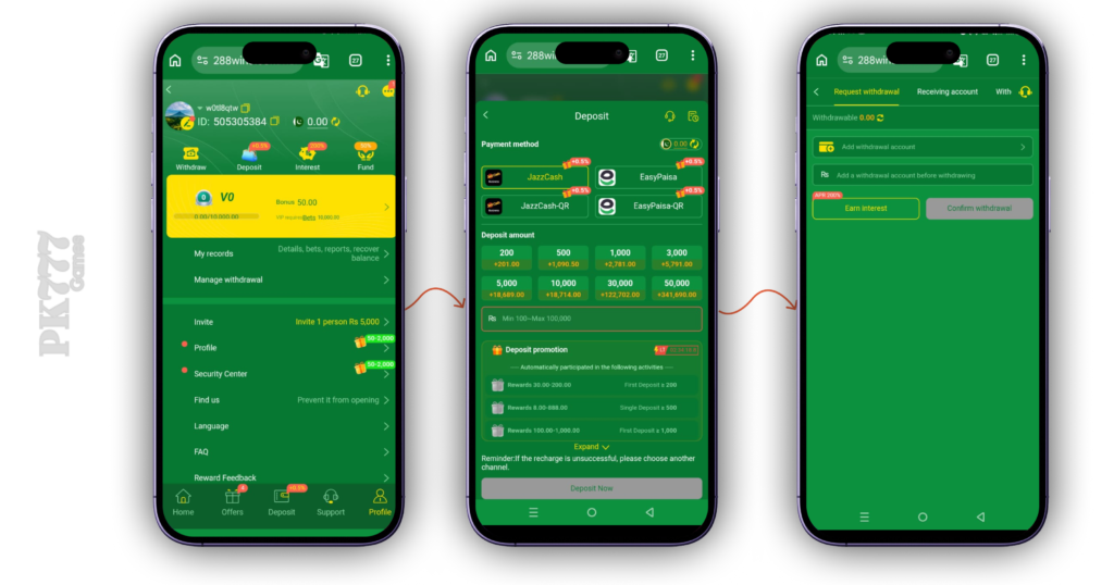 The app also allows linking your payment accounts for faster withdrawals. Users in Pakistan find it straightforward how to register on 288 win, and many start earning within minutes after signing up.