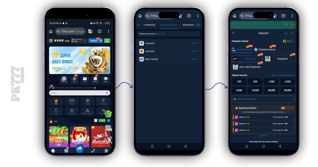 Payment methods such as easypaisa deposit and jazzcash deposit help local players access the platform easily. These options also support bank transfer withdrawal for quick transactions.