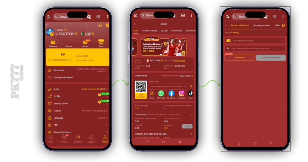 Managing money in the app is an important part of the experience. Users can perform deposit and withdraw 788Win actions through supported payment methods. In Pakistan, many people prefer JazzCash Easypaisa payment because it is fast and widely used through apps like JazzCash and Easypaisa.
