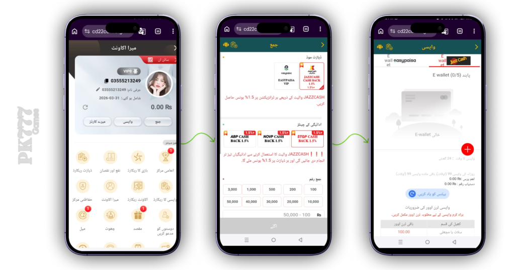 In Pakistan, wallets like JazzCash and Easypaisa are commonly used. Users often ask which payment methods work in CD22 game and how to withdraw money from CD22 game. The process generally involves selecting a method, entering the amount, and confirming the request. Understanding CD22 game minimum deposit and withdrawal helps users manage their balance more effectively and avoid unnecessary issues.