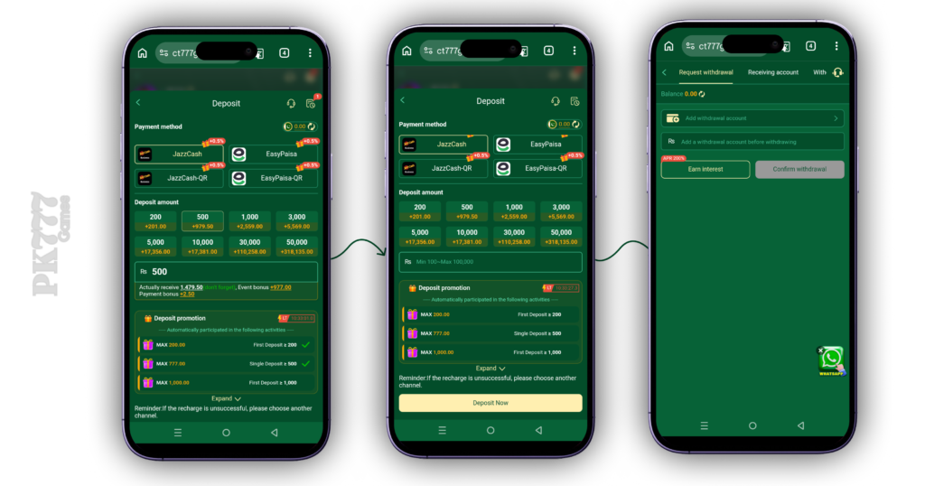 Many Pakistani players look for CT777 game payment methods Pakistan that support local wallets. If payment options are available, users can deposit money through the wallet section inside the app. Withdrawal requests are also submitted from the same panel.