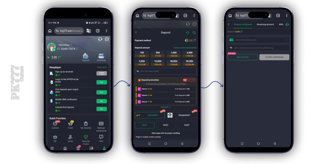 Players can use the hq777 deposit method through services such as hq777 jazzcash payment or hq777 easypaisa payment. These options make the transaction process simple and quick for mobile users.