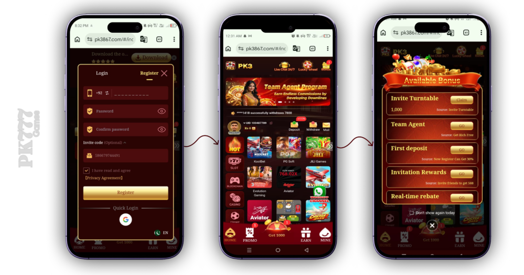PK3 offers bonuses for daily logins and referrals. This referral earning program helps users grow their balance by inviting others. Combined with promotions, it increases engagement and retention.