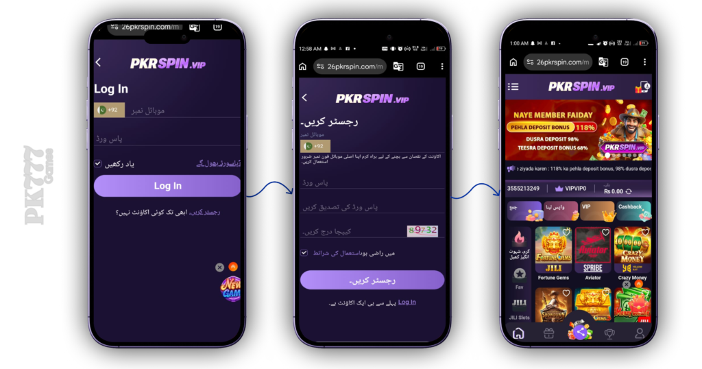How to download PKRSPIN game is simple. Visit the official website for APK download Pakistan, allow installation from unknown sources, and install the app. Registration takes only a few minutes using a mobile number and password.
