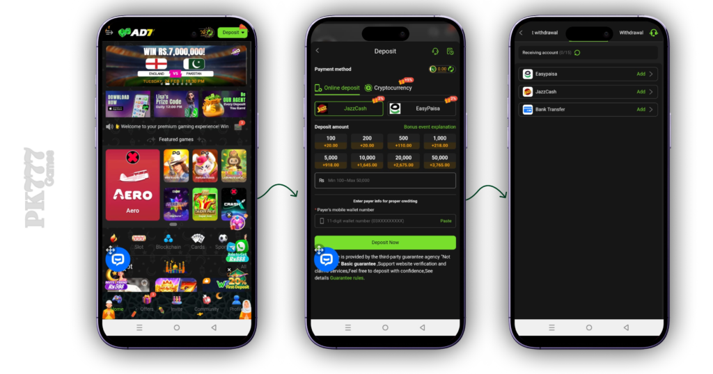 Players in Pakistan can use local mobile payment services for transactions. JazzCash and Easypaisa are commonly used methods for depositing and withdrawing funds.
